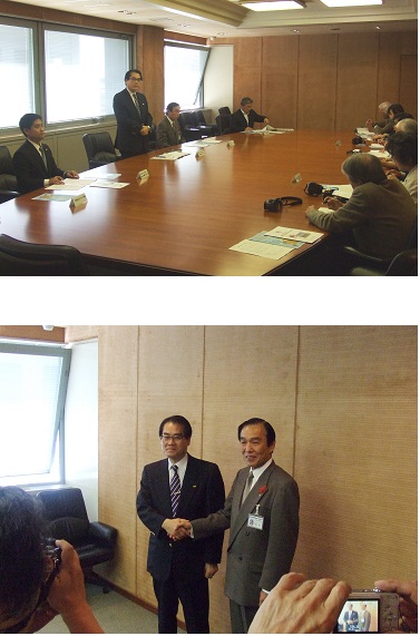 (会見するタイケン学園柴岡三千夫理事長と利根町遠山務町長)