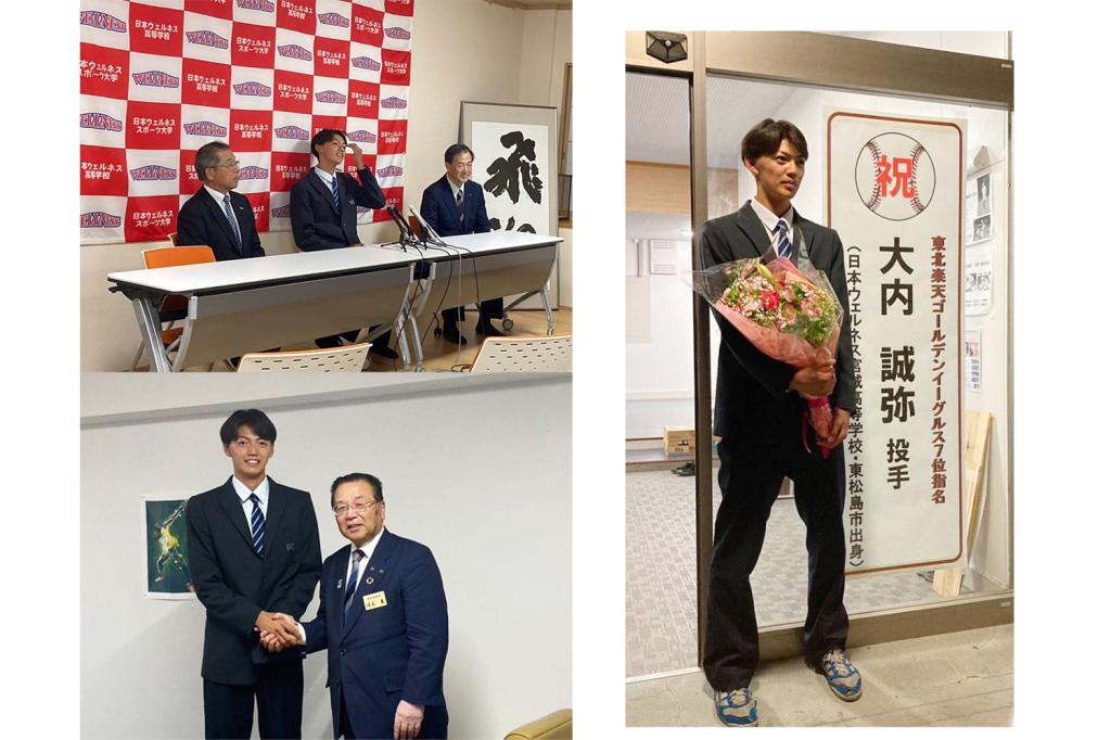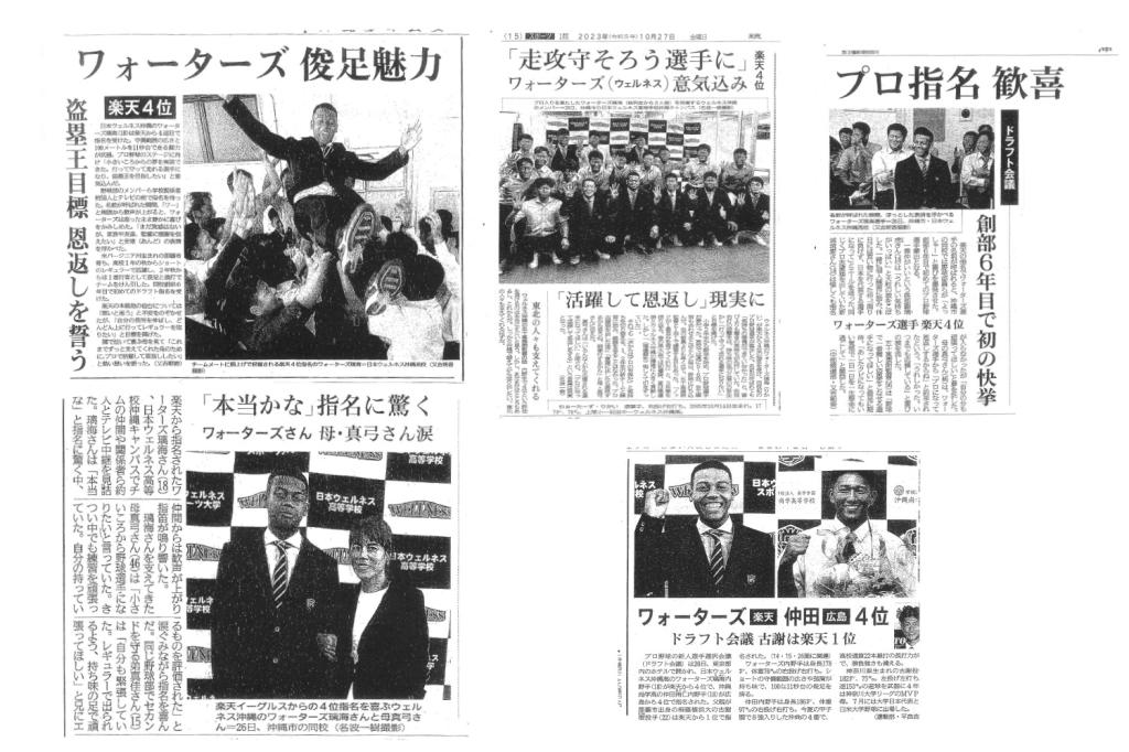 10月26日に行われたプロ野球ドラフト会議で、日本ウェルネス高校沖縄キャンパス・ワォーターズ君(石田中)が楽天イーグルスに4位指名、日本ウェルネス宮城高校・大内君(矢本二中)が楽天イーグルスに7位指名されました。