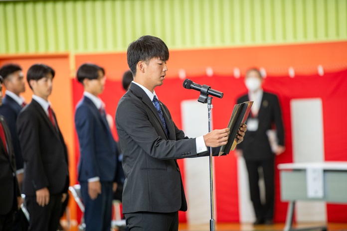 新入生を代表して、金堂時樹さん(佐世保実業高等学校出身)が新入生宣言を行い、在学生を代表して、平野陽彩さん(学部2年・二松学舎大学附属柏高等学校出身)より新入生へ歓迎の言葉が送られ本式典は終了しました。