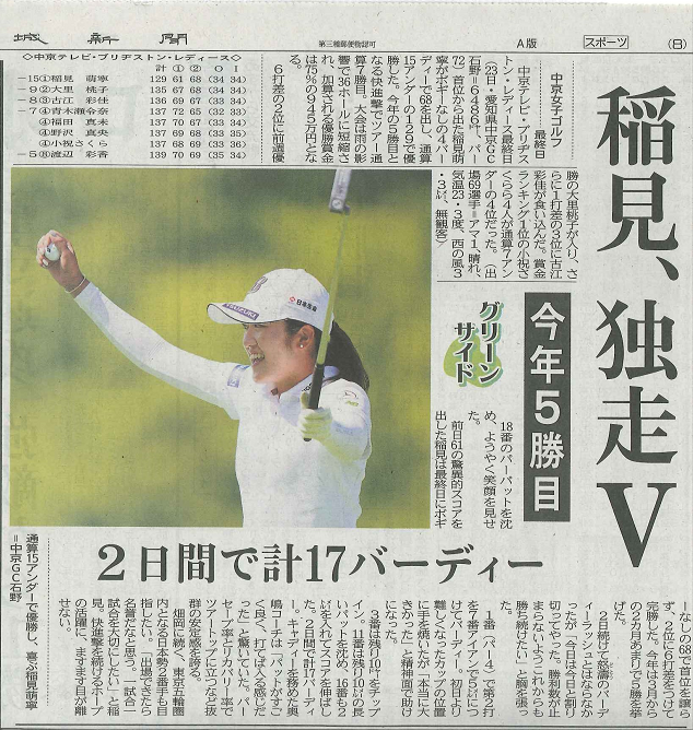 稲見萌寧さん優勝!今季9勝目、ツアー通算10勝目!!2位に西郷真央さん!