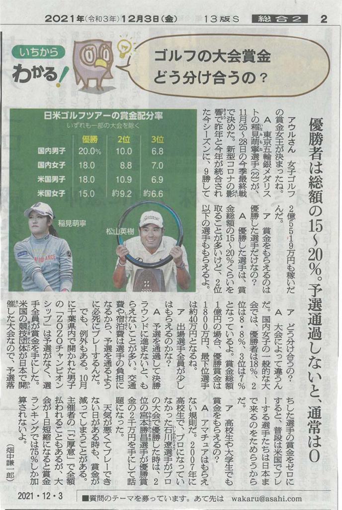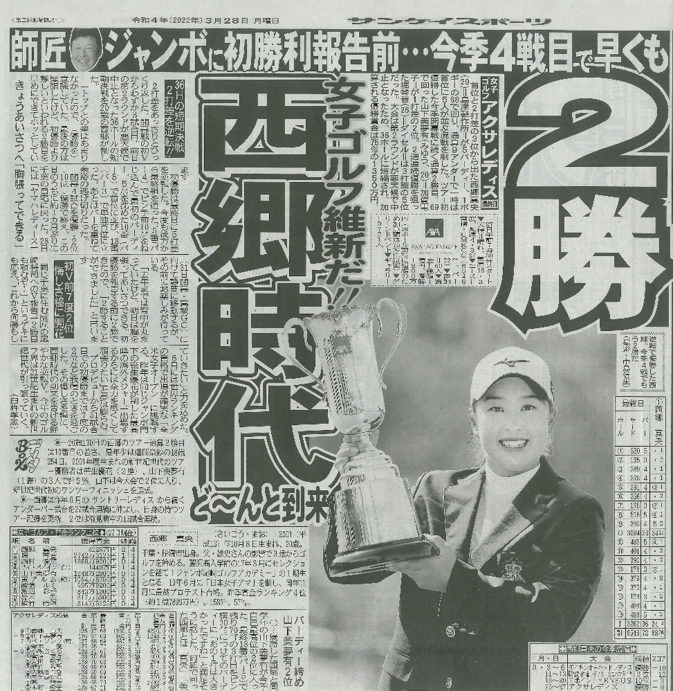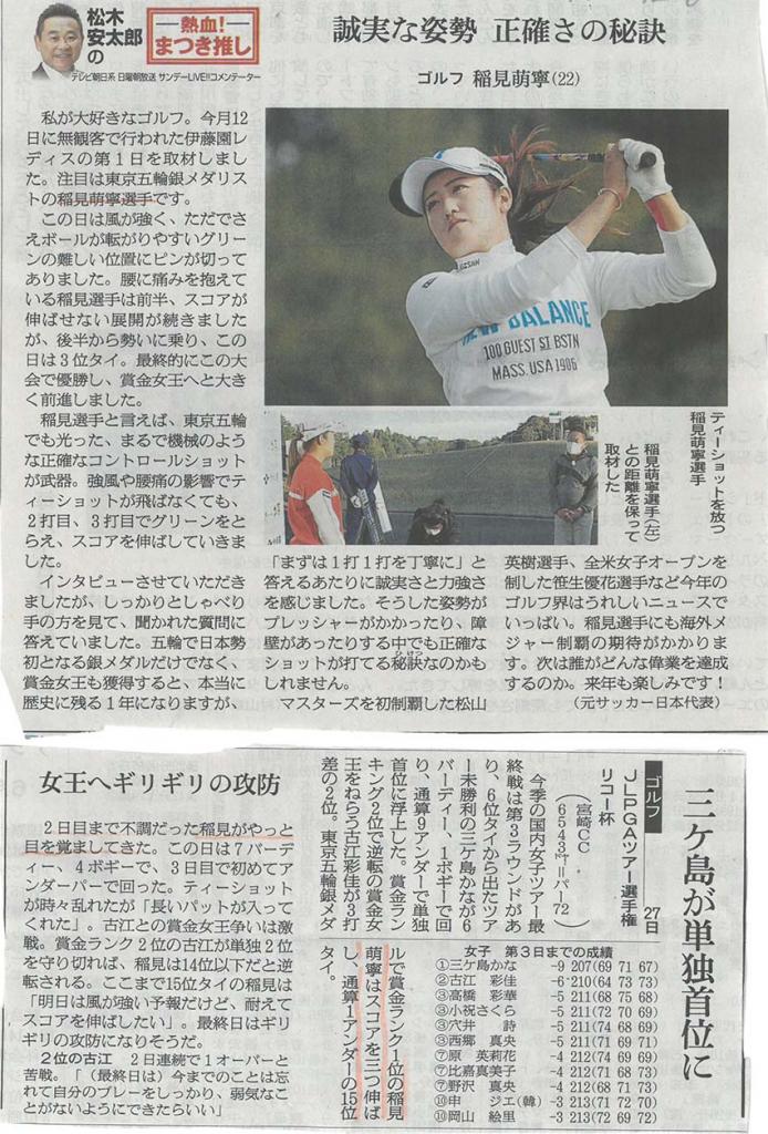 石坂さんの記事が読売新聞に掲載。男子プロゴルフツアーも開幕します!