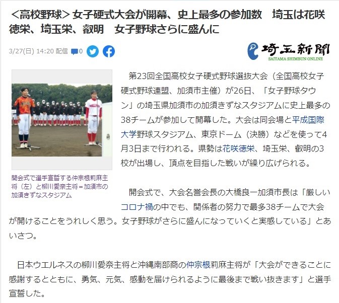 全国高校女子硬式野球選抜大会において選手宣誓【ウェルネス高校東京】