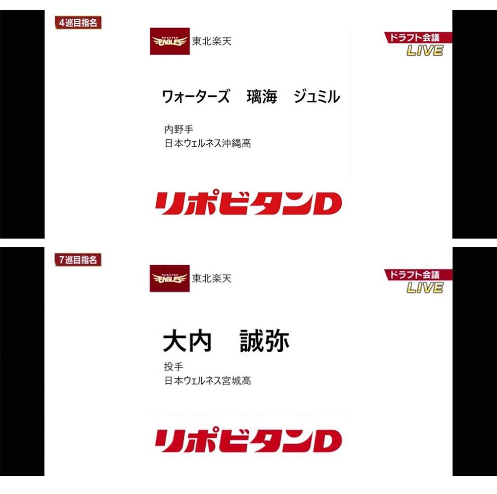 プロ野球ドラフト会議 2名指名【ウェルネス高校沖縄・宮城】